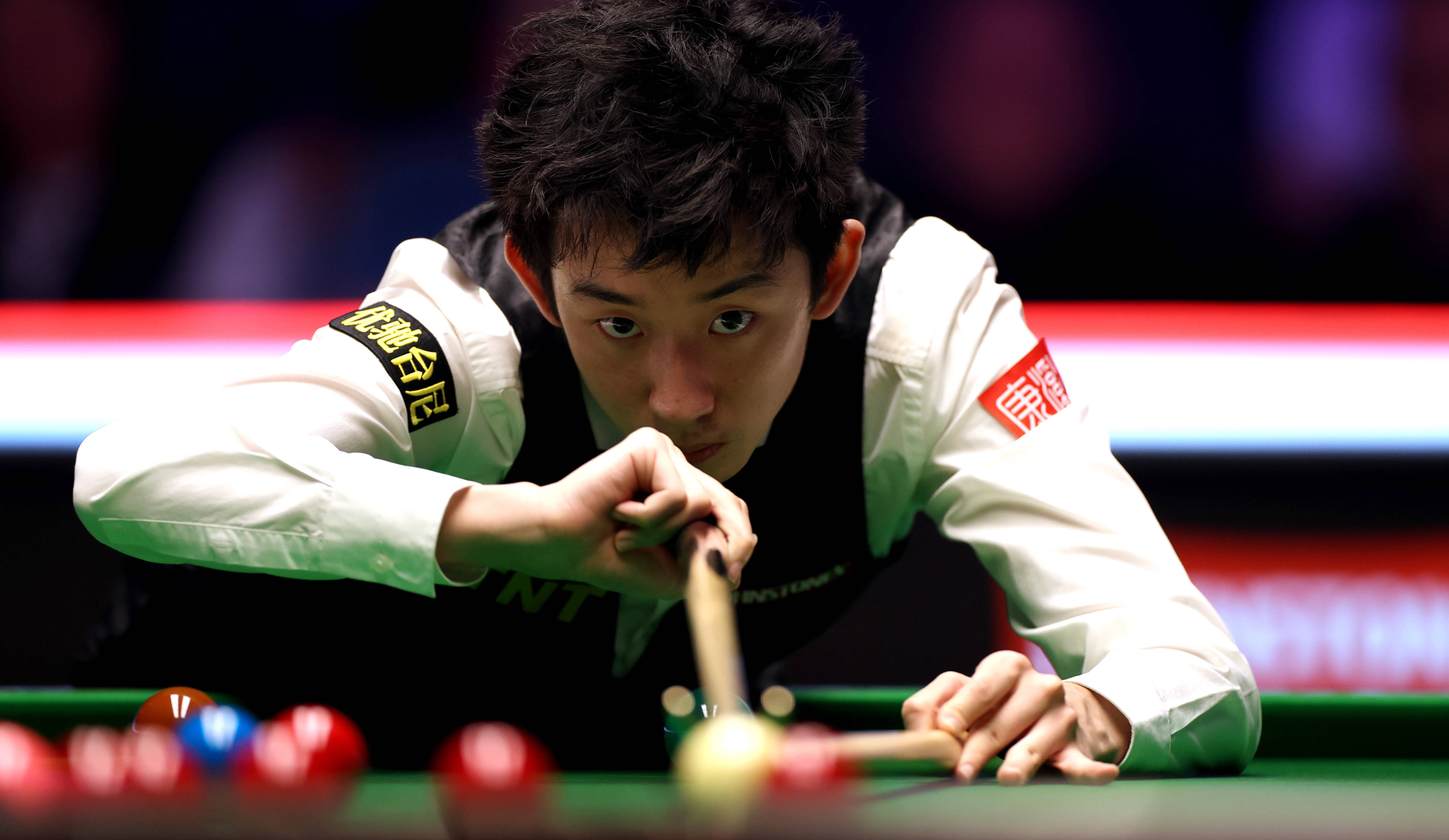 1月17日,吴宜泽在比赛中。新华社记者 李颖 摄决胜局开局后,吴宜泽在长台击打红球时,将红球留在了袋口,母球在向开球区走位时撞到了彩球,留在球台连合中心的位置。威尔逊莫得糜费这一良机,一杆轰出116分,最终赢下见效。